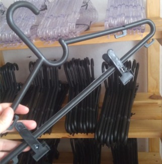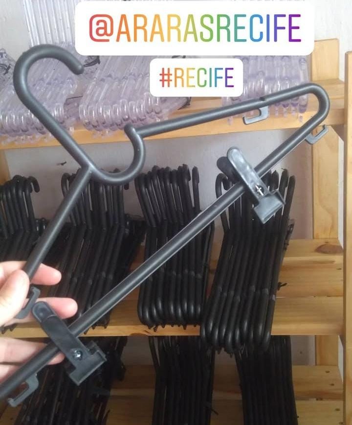 Acompanha 02 (dois) pegadores (presilhas) para pendurar shorts, saias, calças entre outros