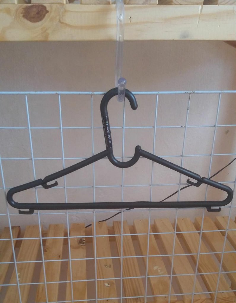 Modelo fixo, possui dois ganchos inferiores para pendurar acessórios e blusa com alça.